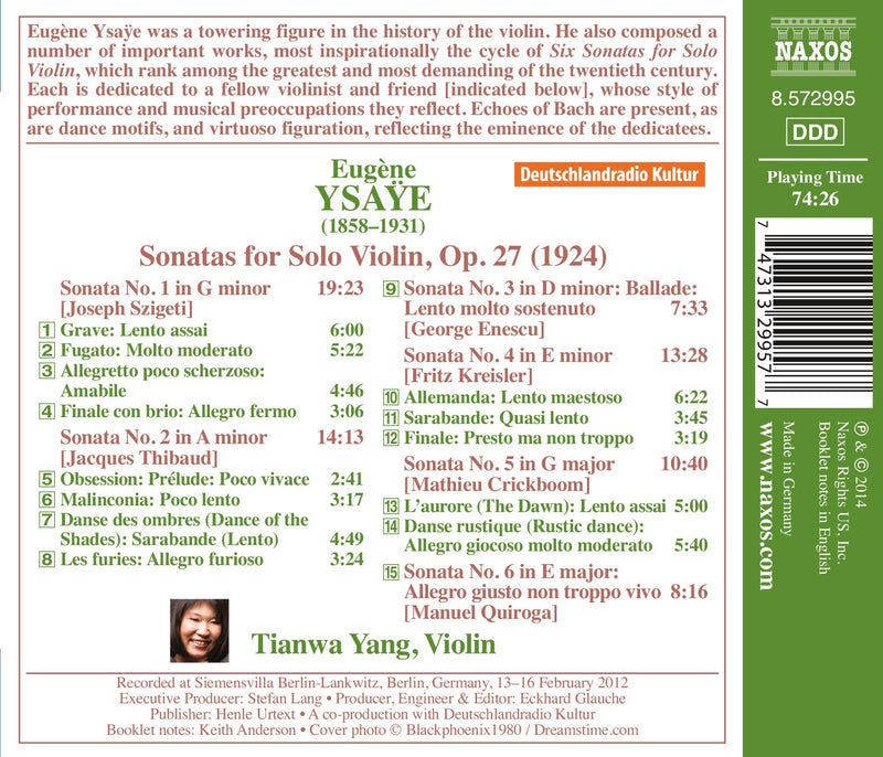 Ysaÿe: Sonatas for Solo Violin / Tianwa Yang