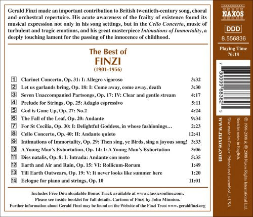 Gerald Finzi made an important contribution to British twentieth-century song, choral and orchestral repertoire. His acute awareness of the frailty of existence...
