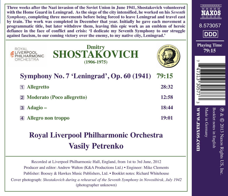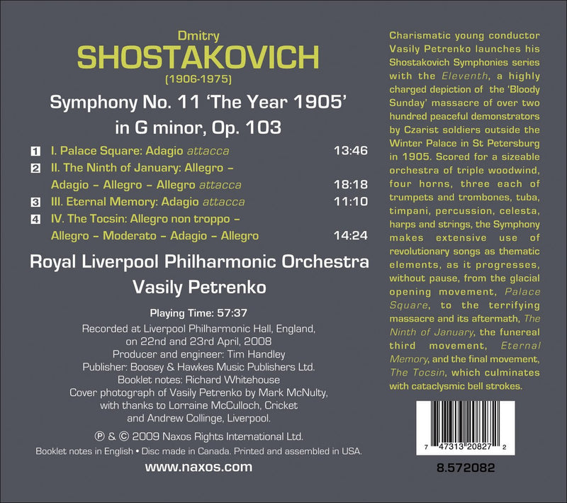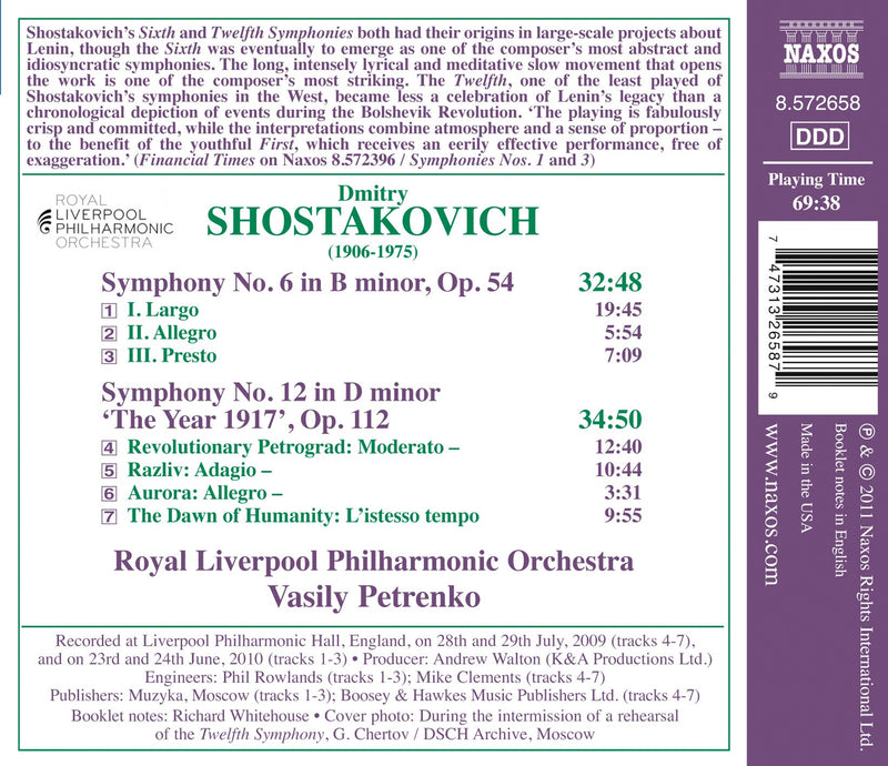Few people doubt the importance of the 15th Symphony. In fact, in bolstering its stature, and its place as the terminal symphony in Shostakovich’s canon, conductors have a tendency to make it seem more funereal than perhaps is necessary. Petrenko’s reading takes 48: 35, which really is quite slow, but this is one of those times when the subjective tempos seem faster. I think this is because Petrenko plays up the chamber music-like textures that dominate this work; slow is not the same as heavy, after all. Also, he is almost maliciously funny in the first movement, and in the third. Yes, the humor is of the black variety, but Petrenko applies it delicately, and as a consequence, there is more subtlety and nuance here than one expects even in this symphony. There are many examples of particularly fine solo playing from several members of the Royal Liverpool Philharmonic, too. Surely, this is one of the best versions of the 15th Symphony currently available—right up there with one of Kondrashin’s recordings, or (for something much richer) Ormandy’s. Petrenko’s Second easily eclipses Morton Gould’s and Bernard Haitink’s (to name two of the most famous alternatives). For the Shostakovich fan, there’s every reason to get this newest release from Petrenko, and no good reason not to. Have at it.