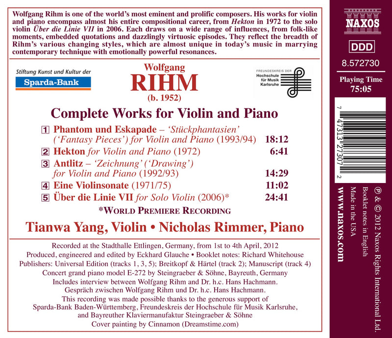 On SaleNaxosRihm: Complete Works For Violin & Piano / Tianwa Yang, Rimmer