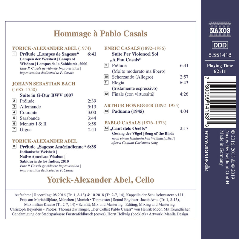 With this program Yorick-Alexander Abel honors the unsurpassed cello legend Pau Casals who as a Catalan is mainly known under his Spanish...