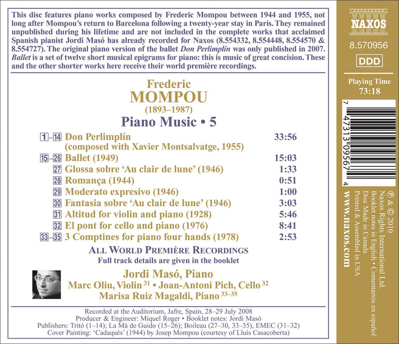 NaxosMompou: Piano Music Vol 5 / Jordi Maso