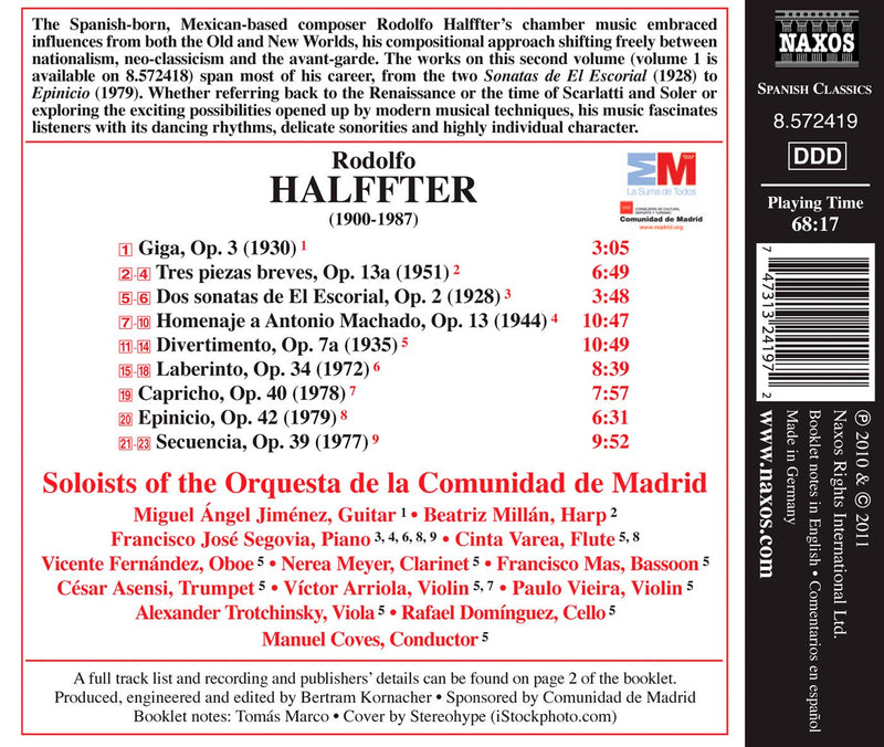 The Spanish-born, Mexican-based composer Rodolfo Halffter' chamber music embraced influences from both the Old and New Worlds, his compositional approach shifting freely...