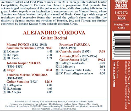 Acclaimed soloist and First Prize winner at the 2017 Tarrega International Guitar Competition, Alejandro Cordova has chosen a programme that presents five...