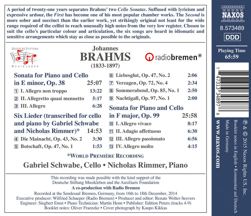 On SaleNaxosBrahms: Cello Sonatas & Songs