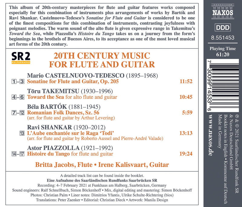 This album of 20th-century masterpieces for flute and guitar features works composed especially for this combination of instruments plus arrangements of works...
