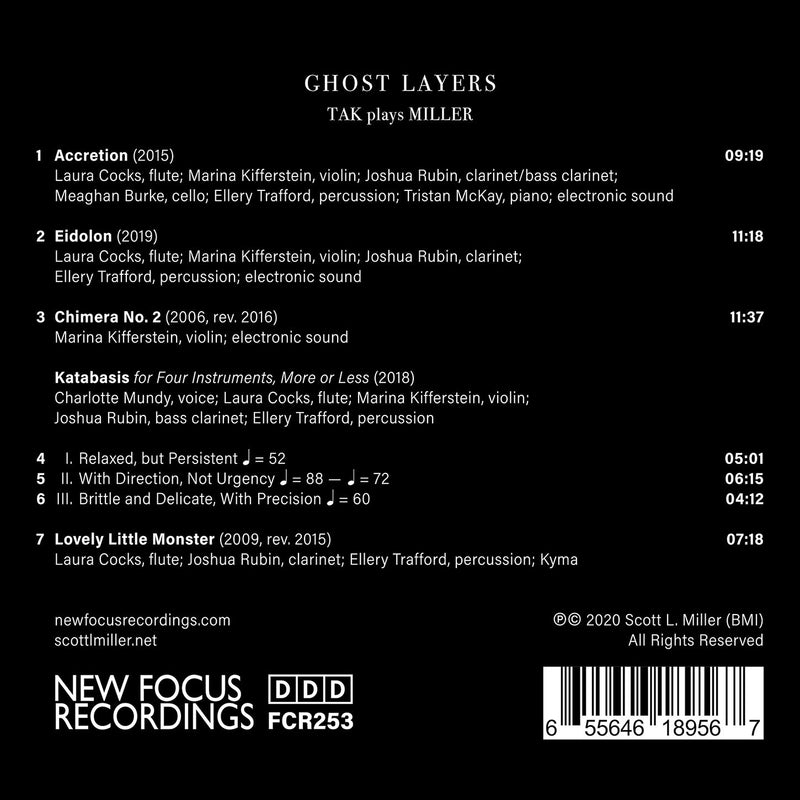 Composer Scott Miller releases ""Ghost Layers"" in collaboration with critically acclaimed TAK Ensemble. The album features recent chamber works, all but one...