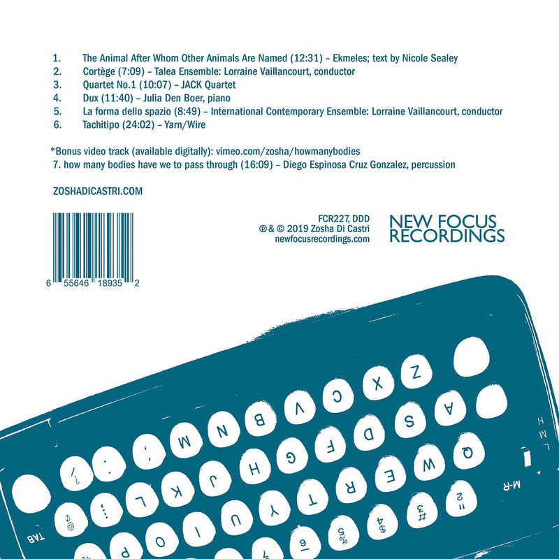 Canadian composer Zosha Di Castri releases this stellar collection of music for various instrumentations, featuring the JACK Quartet, pianist Julia Den Boer,...