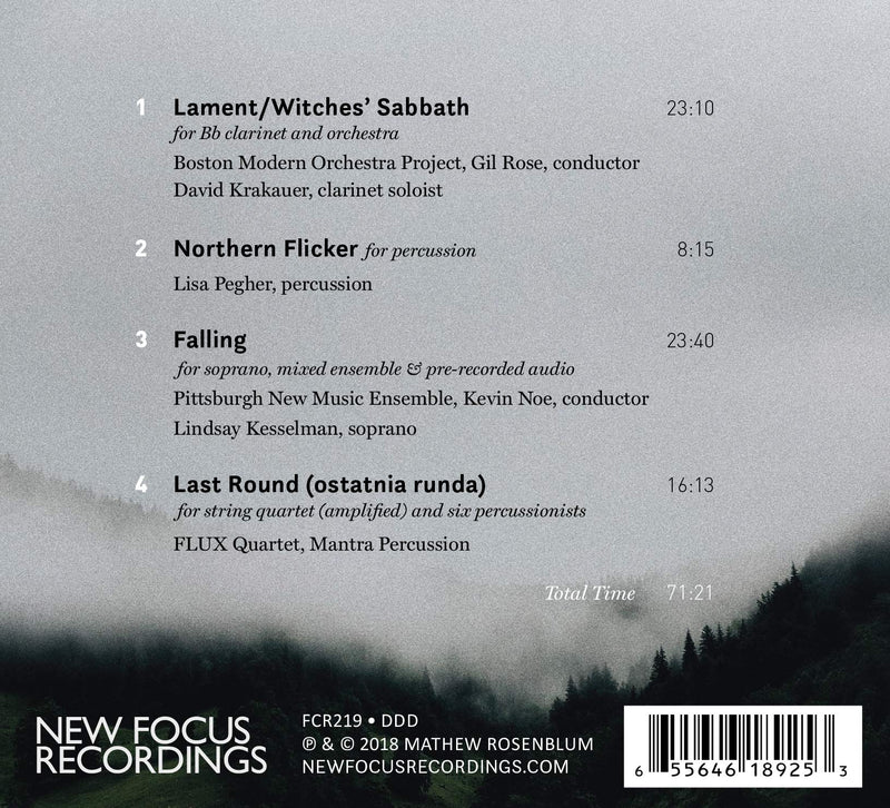 "Lament/Witches' Sabbath, composer Mathew Rosenblum's new album on New Focus Recordings, features David Krakauer, the Boston Modern Orchestra Project, FLUX Quartet, Mantra...