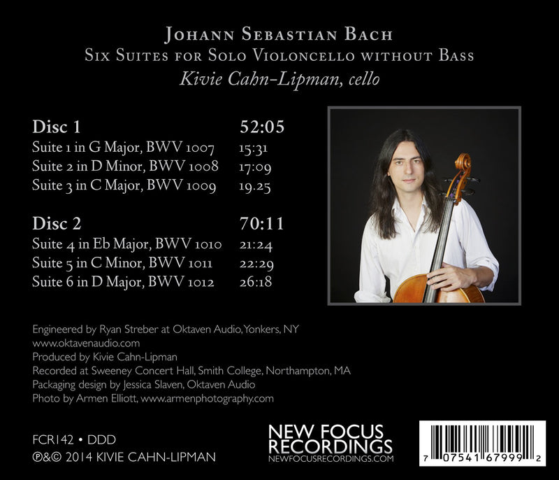 New Focus RecordingsBach: Cello Suites• These Bach's cello suite recordings are cellist Kivie Cahn-Lipman's first solo recordings. • Recorded in Sweeney Concert Hall, Smith College, in...