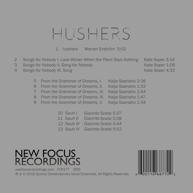 New Focus RecordingsHushers / Quince Contemporary Vocal EnsembleThe opening bars of Warren Enström's Hushers on Quince Contemporary Vocal Ensemble's new release emphasize extended fricative sounds that could be mistaken...