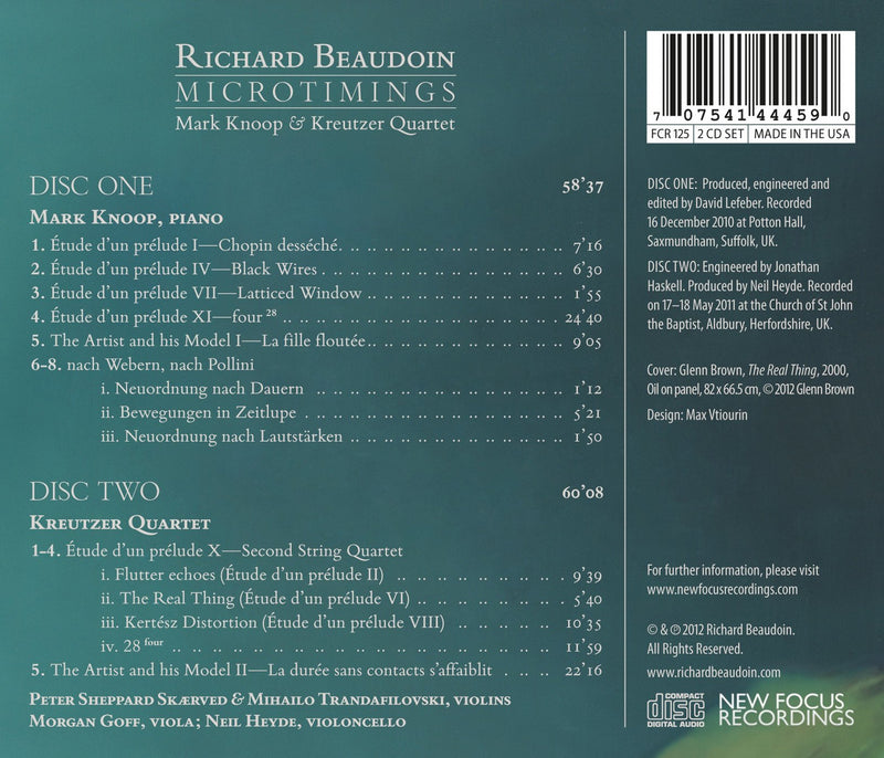 This 2-CD set includes the inaugural recordings of Beaudoin's music based on microtiming: A refined methodology for translating micro-temporal properties of a...