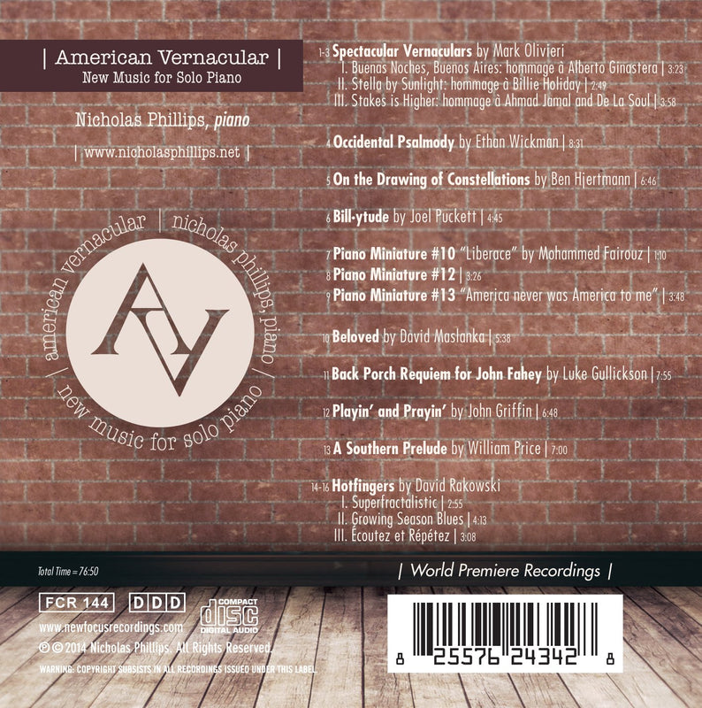• American Vernacular features ten world premiere • recordings. • Pianist Nicholas Phillips maintains an active schedule as a soloist, having played...