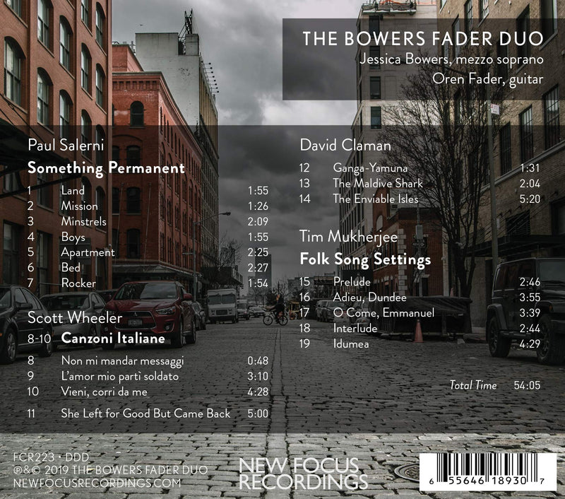 Since their formation in 2009, The Bowers Fader Duo (Jessica Bowers, mezzo-soprano, and Oren Fader, guitar) has commissioned over 20 new works...