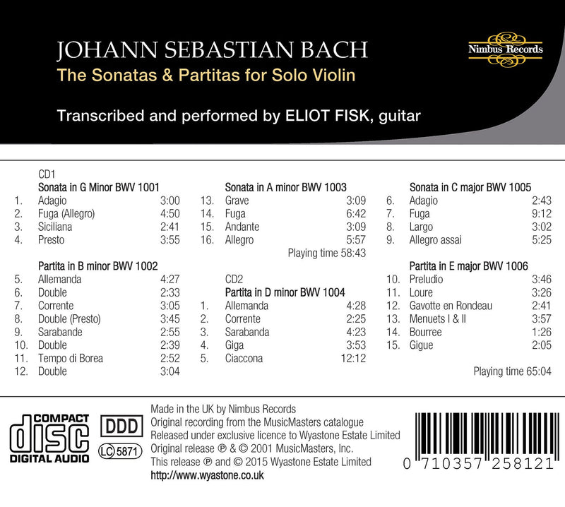 NimbusBach: The Sonatas & Partitas For Solo Violin / Eliot Fisk