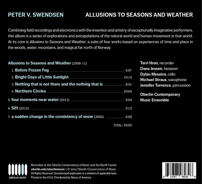 Allusions to Seasons and Weather is a suite of four works based on experiences of time and place in the woods, water,...