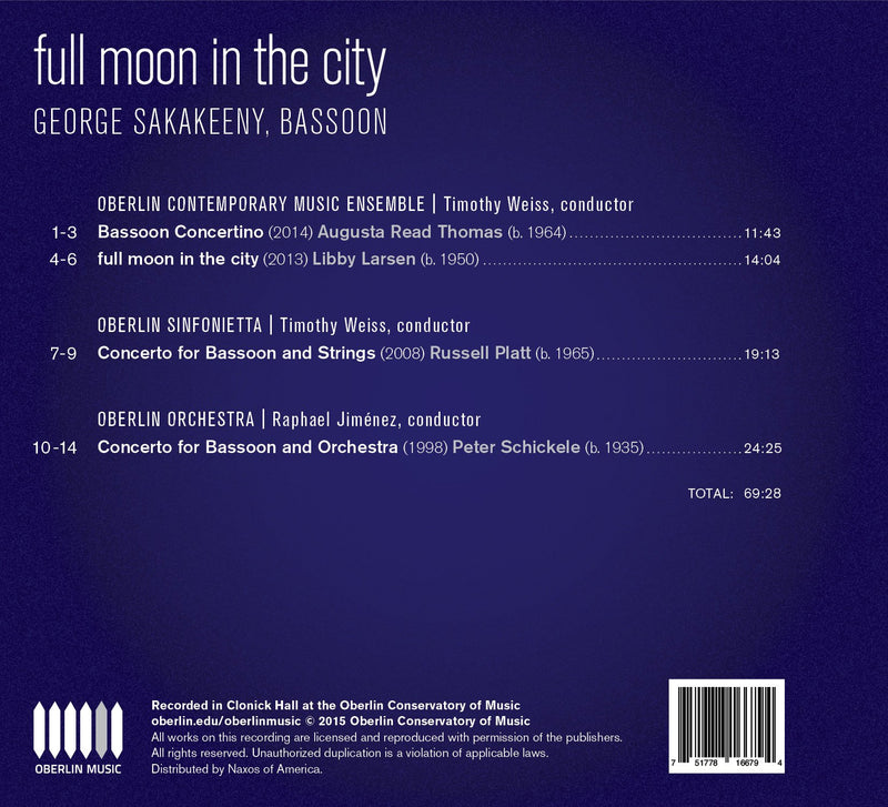A showcase for contemporary bassoon repertoire, the bassoonist George Sakakeeny is accompanied by three ensembles from the Oberlin Conservatory of Music to...