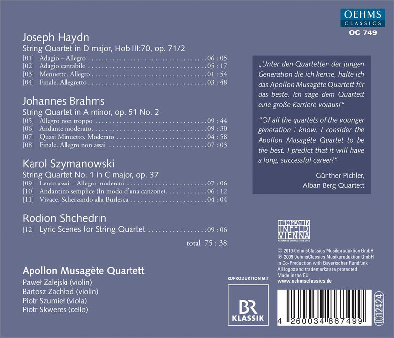 Oehms ClassicsApollon Musagète Quartett - Haydn, Brahms, Szymanowski, Shch