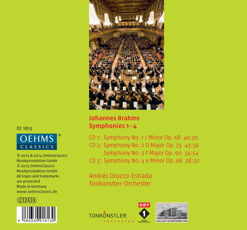 Oehms ClassicsBrahms: Symphonies Nos. 1-4 / Orozco-Estrada, Tonkünstler Orchestra