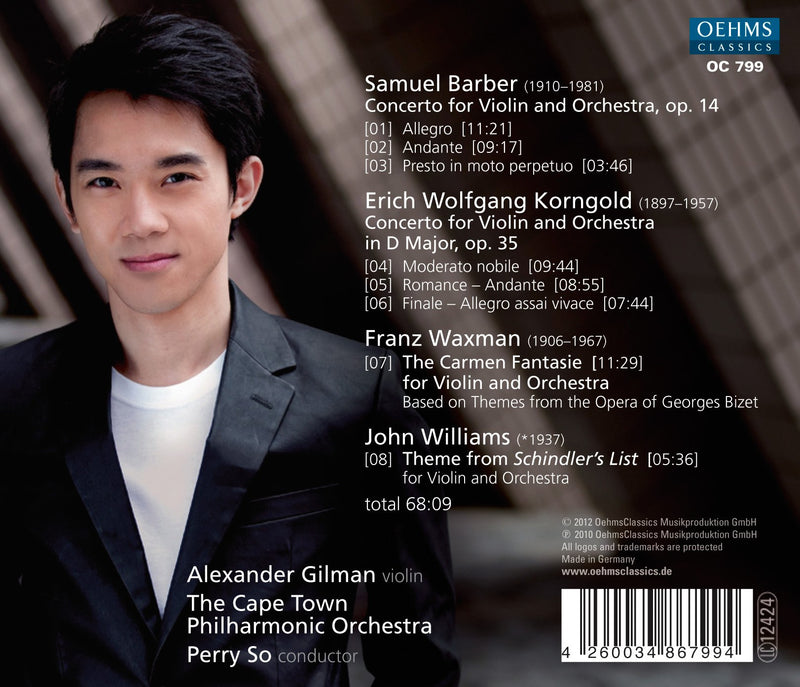 BARBER Violin Concerto. KORNGOLD Violin Concerto. WAXMAN Carmen Fantasy & • Alexander Gilman (vn); Perry So, cond; Cape Town PO • OEHMS...