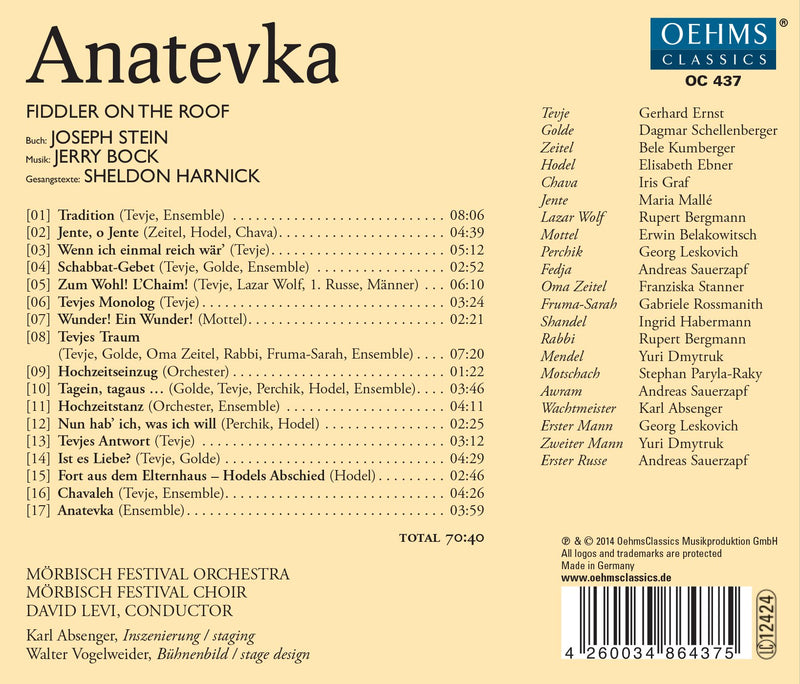 On SaleOehms ClassicsBock: Anatevka (Fiddler On The Roof) / Levi, Schellenberger, Kumberger, Ernst, Ebner