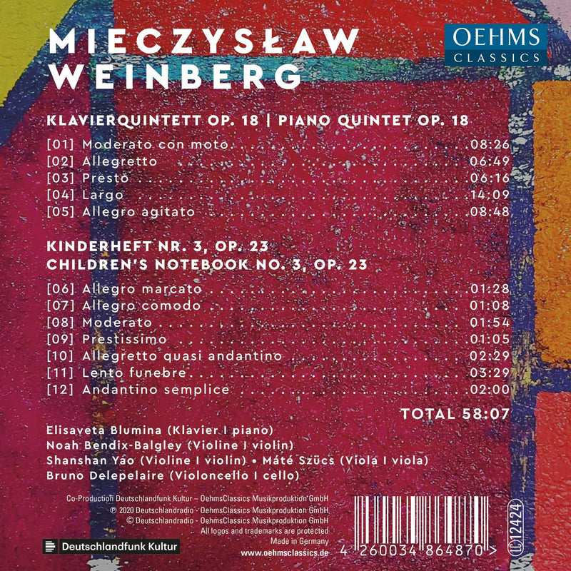 Oehms ClassicsWeinberg: Piano Quintet; Children's Notebook, Book 3 / Blumina, Bendix-Balgley et al.