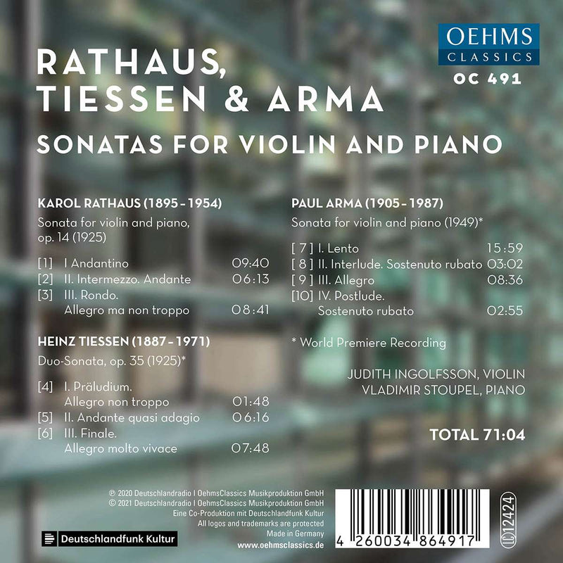 On SaleOehms ClassicsRathaus, Tiessen & Arma: Violin Sonatas / Duo Ingolfsson-Stoupel