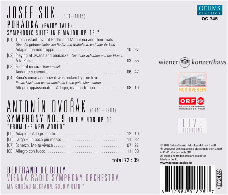 DVORÁK Symphony No. 9, “From the New World.” SUK Pohádka, op. 16 • Bertrand de Billy, cond; Vienna RSO • OEHMS 745...