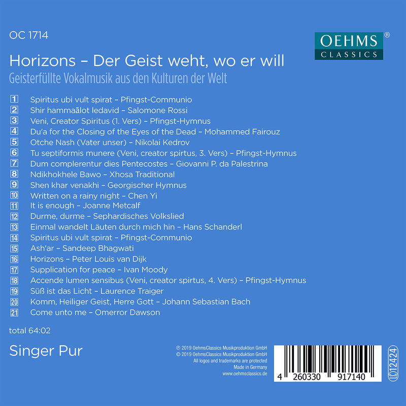 Spirit connects far beyond cultural and religious boundaries. That is why here SINGER PUR seeks to link the spirit from different world...