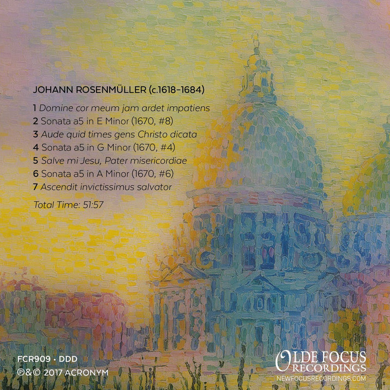 Olde Focus RecordingsJohann Rosenmuller in Exile / Blumberg, AcronymJohann Rosenmüller was one of the mos ttalented and prolific young composers in Germany: he was organist at Leipzig's Nikolaikirche and all-but-assured...