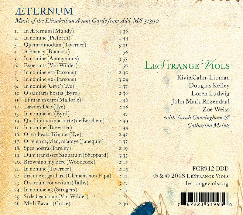 Olde Focus RecordingsAeternum / Le Strange ViolsThe Elizabethan manuscript from which this album is entirely drawn is known by its British Library shelf-mark: Additional Manuscript 31390. Add. MS...