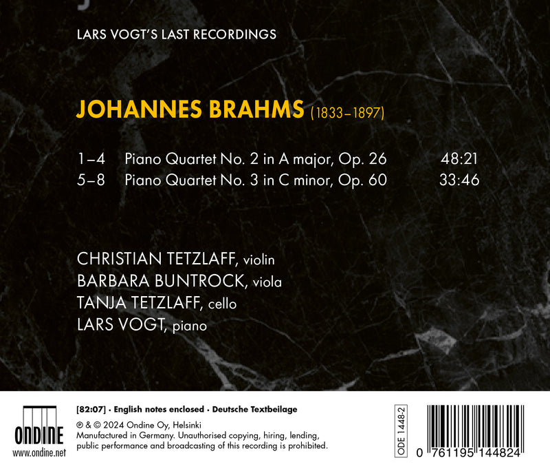 This album of two piano quartets by Johannes Brahms (1833–1897) captures pianist Lars Vogt’s last recordings. Before his premature death and between...