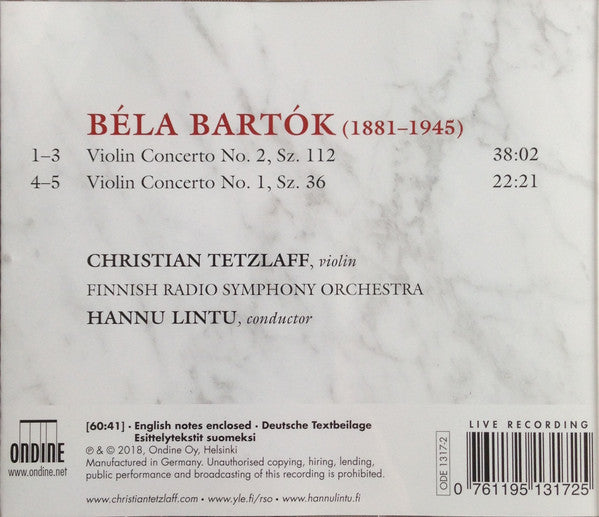 OndineBartok: Violin Concertos 1 & 2 / Tetzlaff, Lintu, Finnish Radio Symphony