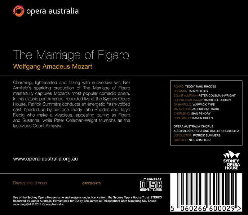 Opera AustraliaMozart: Le Nozze Di Figaro / Summers, Tahu-rhodes, Fiebig, Pendry, Coleman-WrightAlso available on Blu-ray 'A marriage of distinction. An energetic, fresh-voiced cast...Teddy Tahu Rhodes and Taryn Feibig were a vivacious, appealing pairing...vocally...