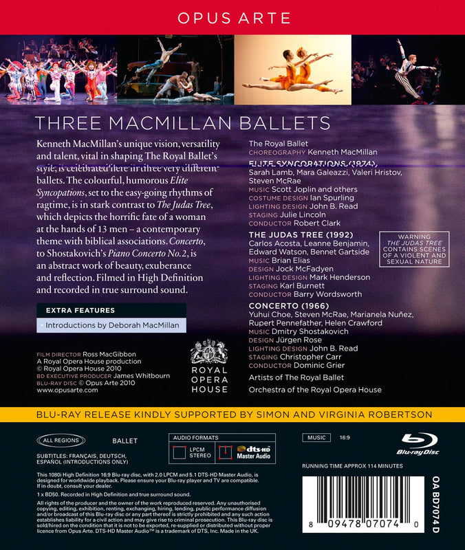 Opus ArteThree Ballets by Kenneth Macmillan - Concerto, Elite Syncopations, Judas Tree [Blu-ray]Note: This Blu-ray Disc is only playable on Blu-ray Disc players and not compatible with standard DVD players. "With The Judas Tree...