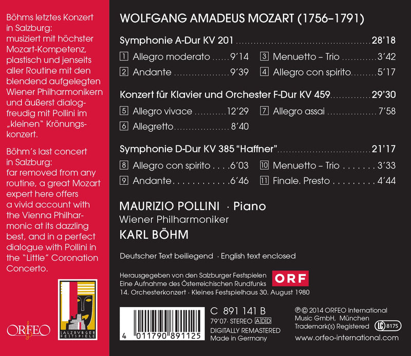 OrfeoMozart: Symphonie Kv 201; Klavierkonzert Kv 459; Symphony Kv 385 "haffner"