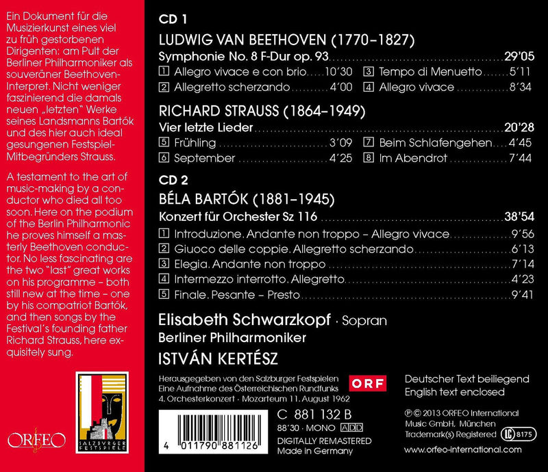 OrfeoBeethoven: Symphonie No. 8; Strauss: Vier Letzte Lieder; Bartok: Konzert Fur Orchester