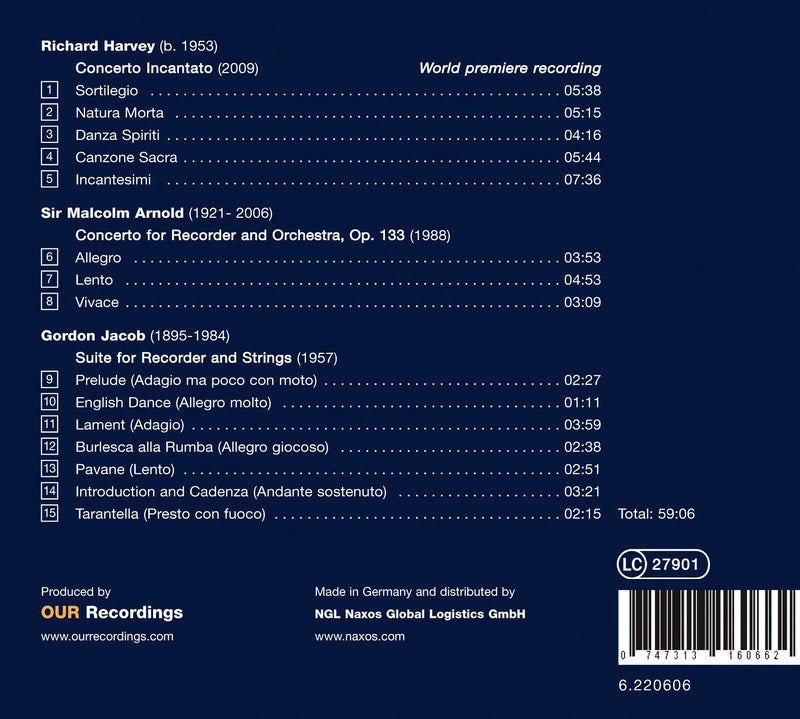 Arnold Concerto and the stylistic balance of the Richard Harvey I feel that it will be essential listening for enthusiasts of recorder music. The presentation of the disc is impressive: it looks and feels good. The sound quality is excellent. I enjoyed the liner-notes – they are both informative and entertaining.