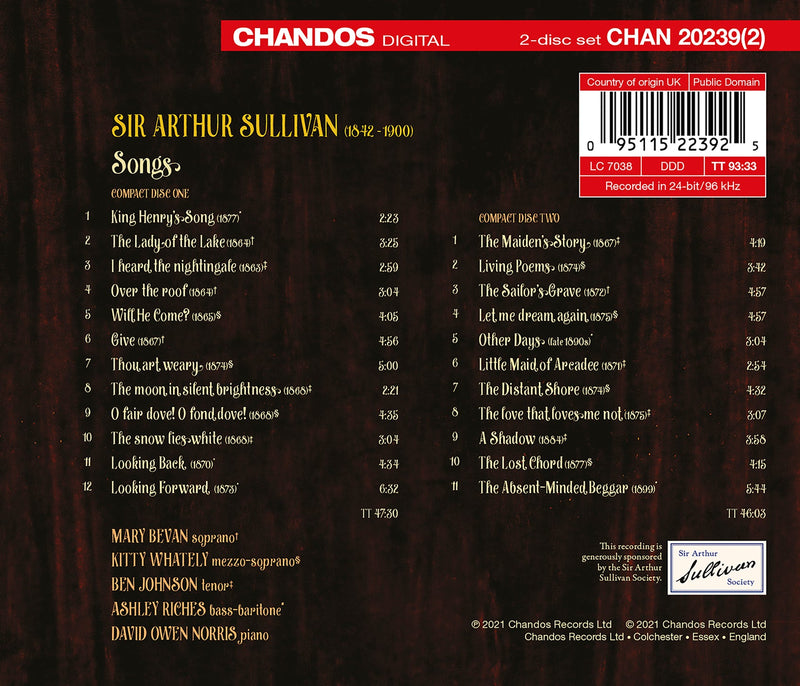 On SaleChandosThe Harmonious Echo - Songs of Arthur Sullivan / Bevan, Whately, Norris