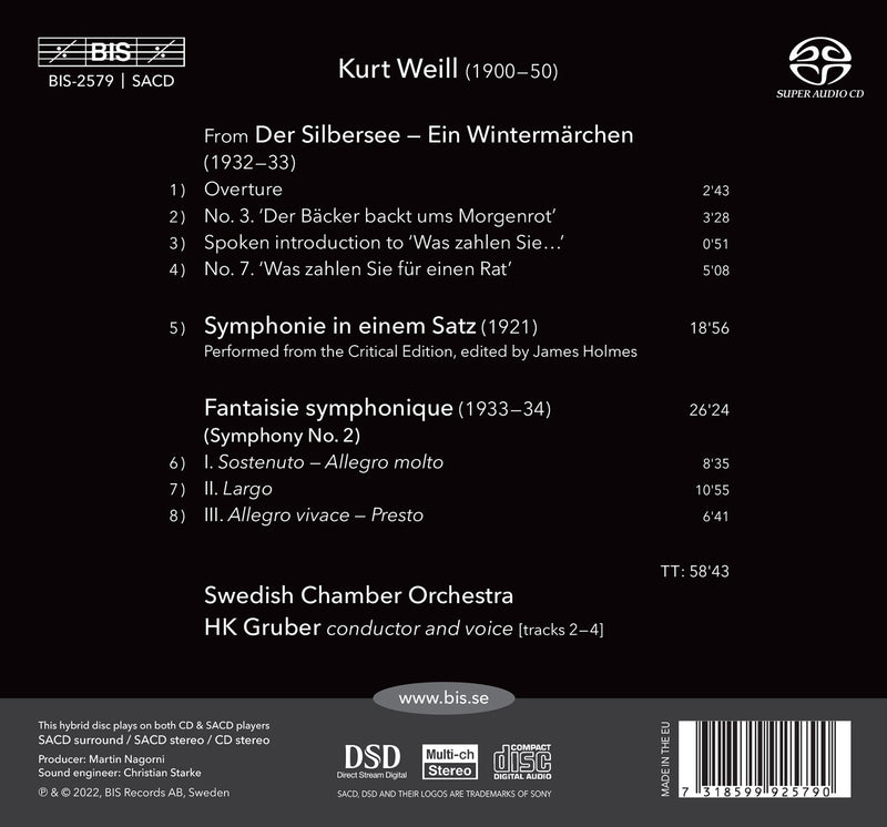 On SaleBISWeill: Symphonies Nos. 1 & 2; Der Silbersee / Gruber, Swedish Chamber Orchestra