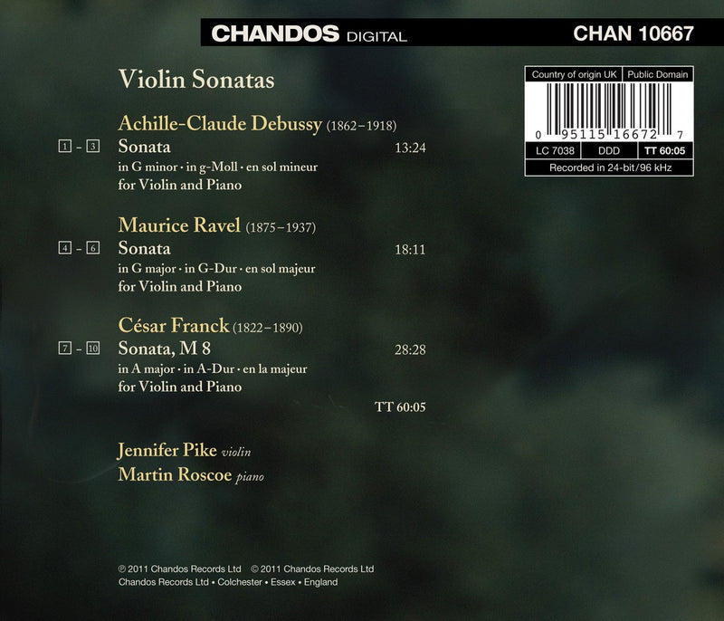 On SaleChandosFranck, Debussy, Ravel: Violin Sonatas / Pike, Roscoe