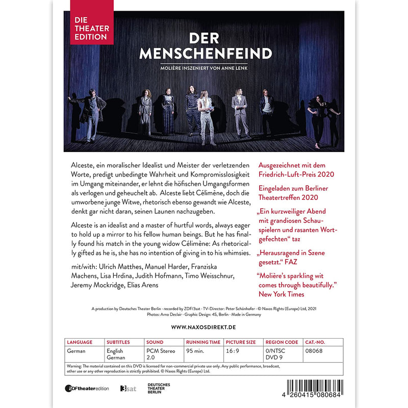 On SaleNaxos AudioVisualMolière: Der Menschenfeind / Lenk, Deutsches Theater Berlin [DVD]