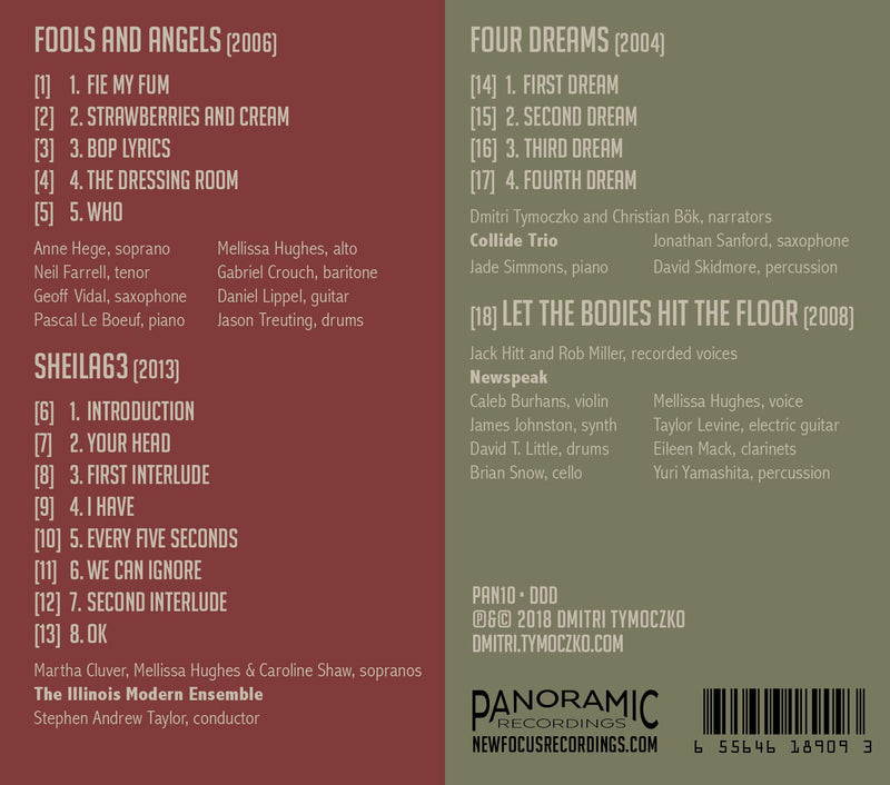 Dmitri Tymoczko's "Fools and Angels" includes four works for voices and ensemble that demonstrate a wide range of approaches to vocal writing...
