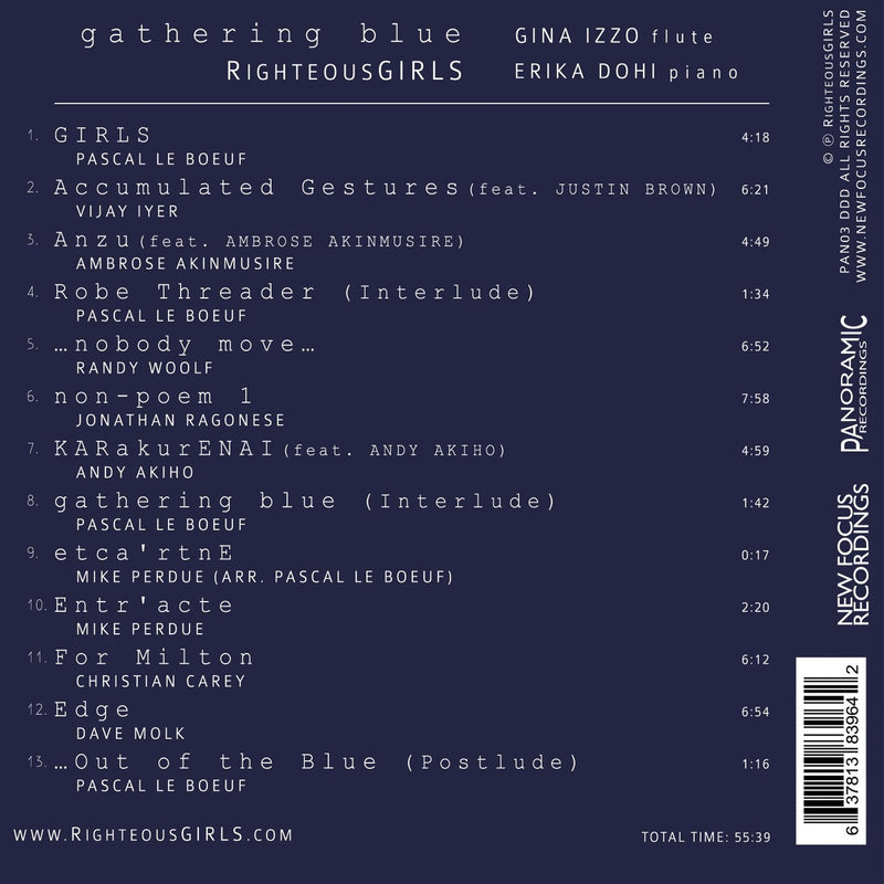 ‘gathering blue’ is the debut album by contemporary music duo RighteousGIRLS (flutist Gina Izzo and pianist Erika Dohi). RighteousGIRLS champions work at...