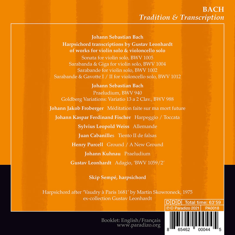 On this release Skip Semp� performs Gustav Leonhardt's transcriptions of Bach's unaccompanied violin and cello works for the harpsichord, along with a...