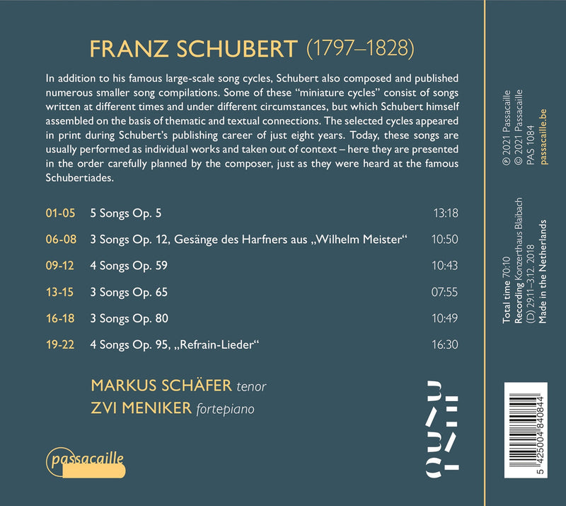 In addition to his famous large-scale song cycles, Schubert also composed and published numerous smaller song compilations. Some of these "miniature cycles"...