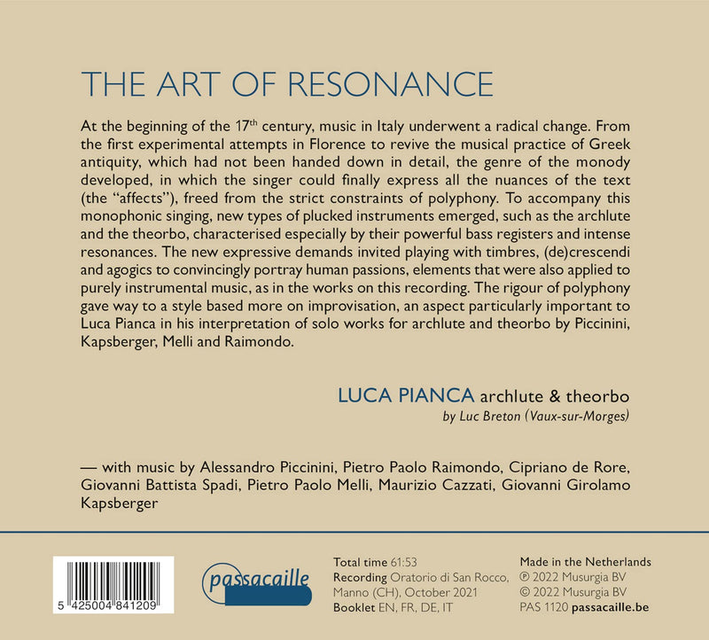 PassacailleCazzati, Kapsberger, Melli, Piccinini, Riamondo, Rore & Spadi: The Art of Resonance - Archlute & Theorbo Music of the Italian Seicento