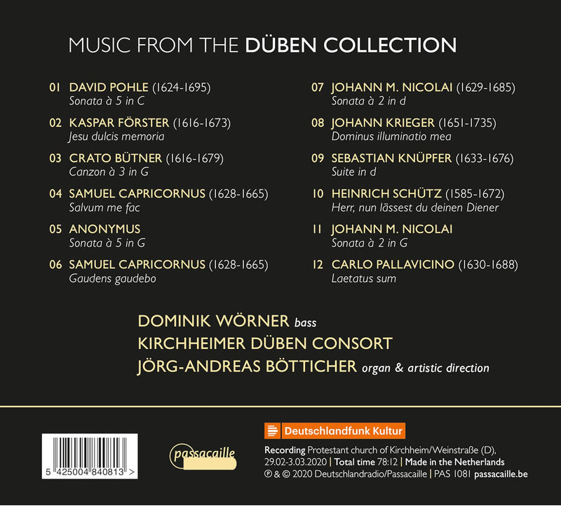 The bass-baritone Dominik Wörner and the Kirchheimer DübenConsort he founded dedicate themselves here to twelve pieces from the famous Düben collection and...