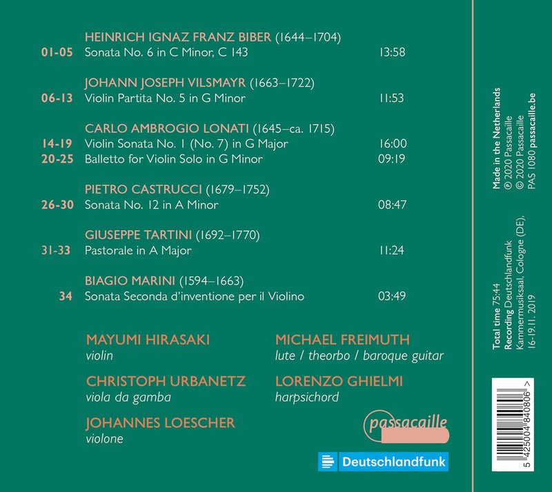PassacailleL'arte Della Scordatura / Mayumi Hirasaki, Freimuth, Urbanetz, GhielmiThis release on PASSACAILLE with the exceptional baroque violinist Mayumi Hirasaki presents masterpieces of the virtuoso violin literature with scordatura, which had...