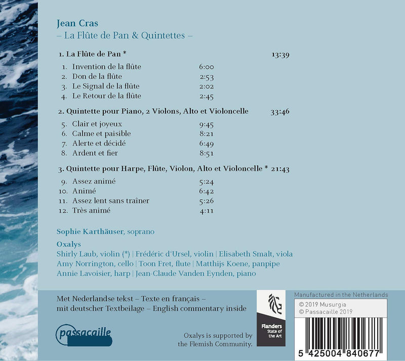 PassacailleLA FLUTE DE PAN & QUINTETTESThe late romantic Jean Cras (1879-1932) managed to unite his passion for the sea and music throughout his life. As a naval...